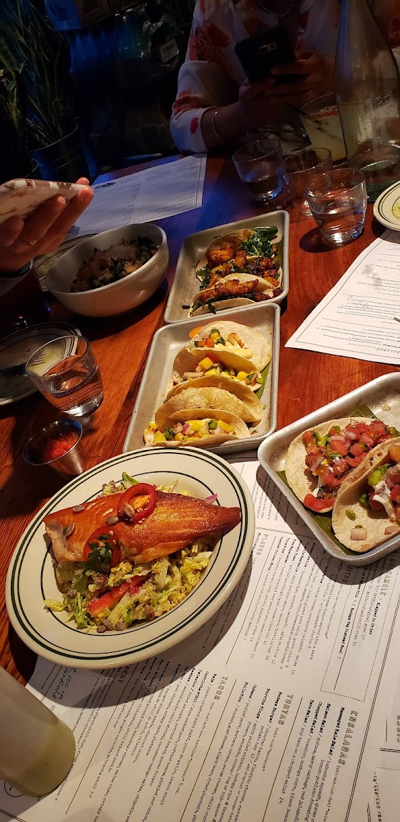 Enough for a Family of 4. Comes with 2 Taco choices, all the Fixin’s and Salsa’s ready to roll into our soft corn tortillas. comes with guac, chips, pico, brussel sprouts , rice & beans and bodega red and green sauces.